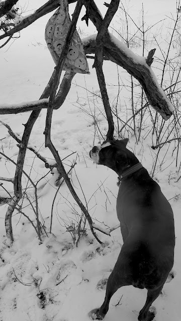 we've been making this tree branch mobile sculpture falulu for some time and today i added an emoji balloon. lulu nabbed it and ran like hell, then she joyfully ripped it to pieces.